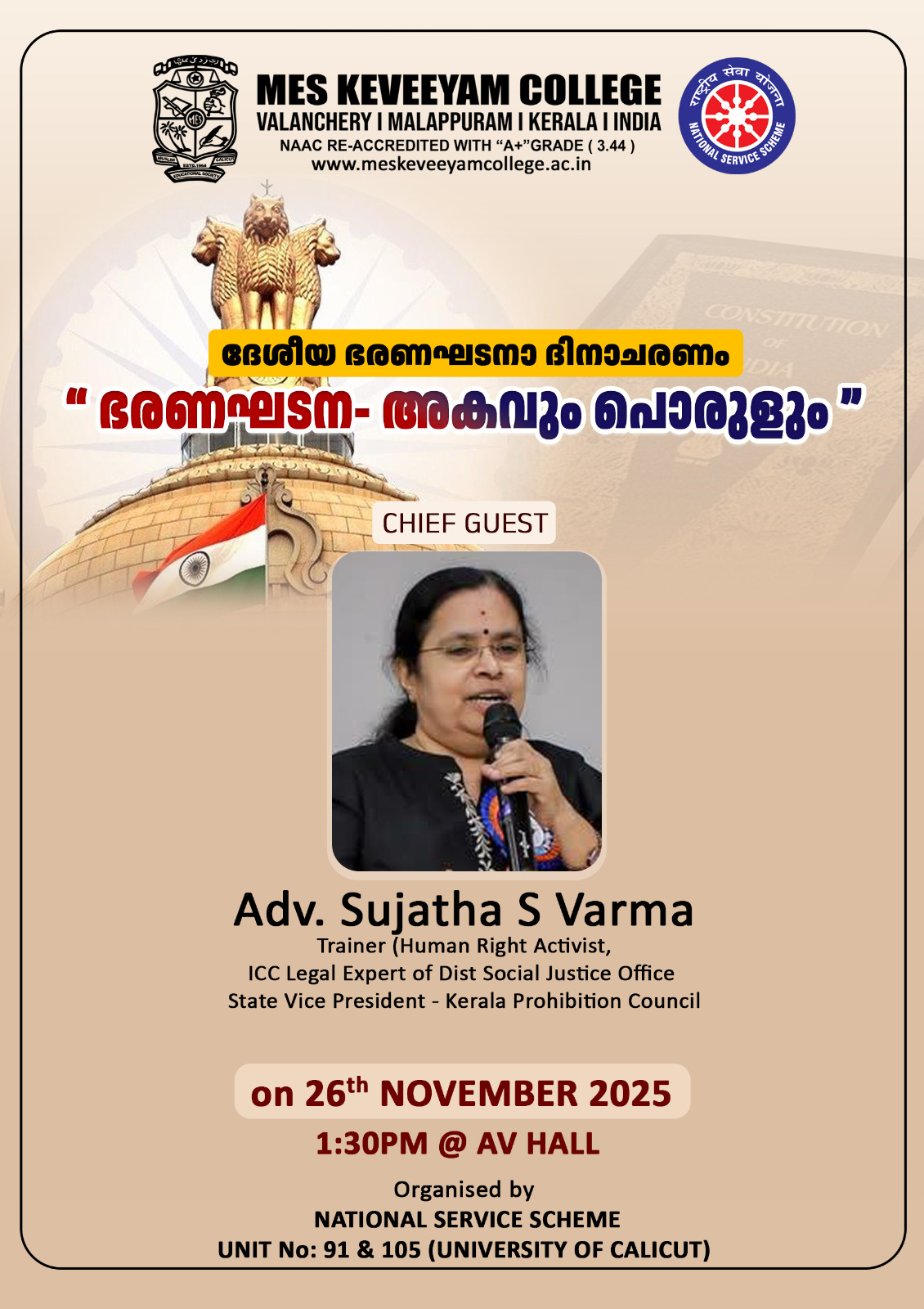 MES Keveeyam College Valanchery with the mission to contribute to society through the pursuit of education, learning and research at th