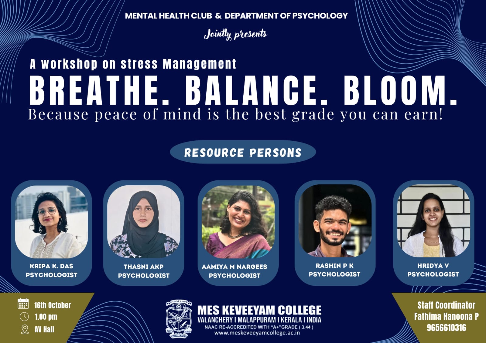 A workshop on stress Management - BREATHE. BALANGE. BLOOM.