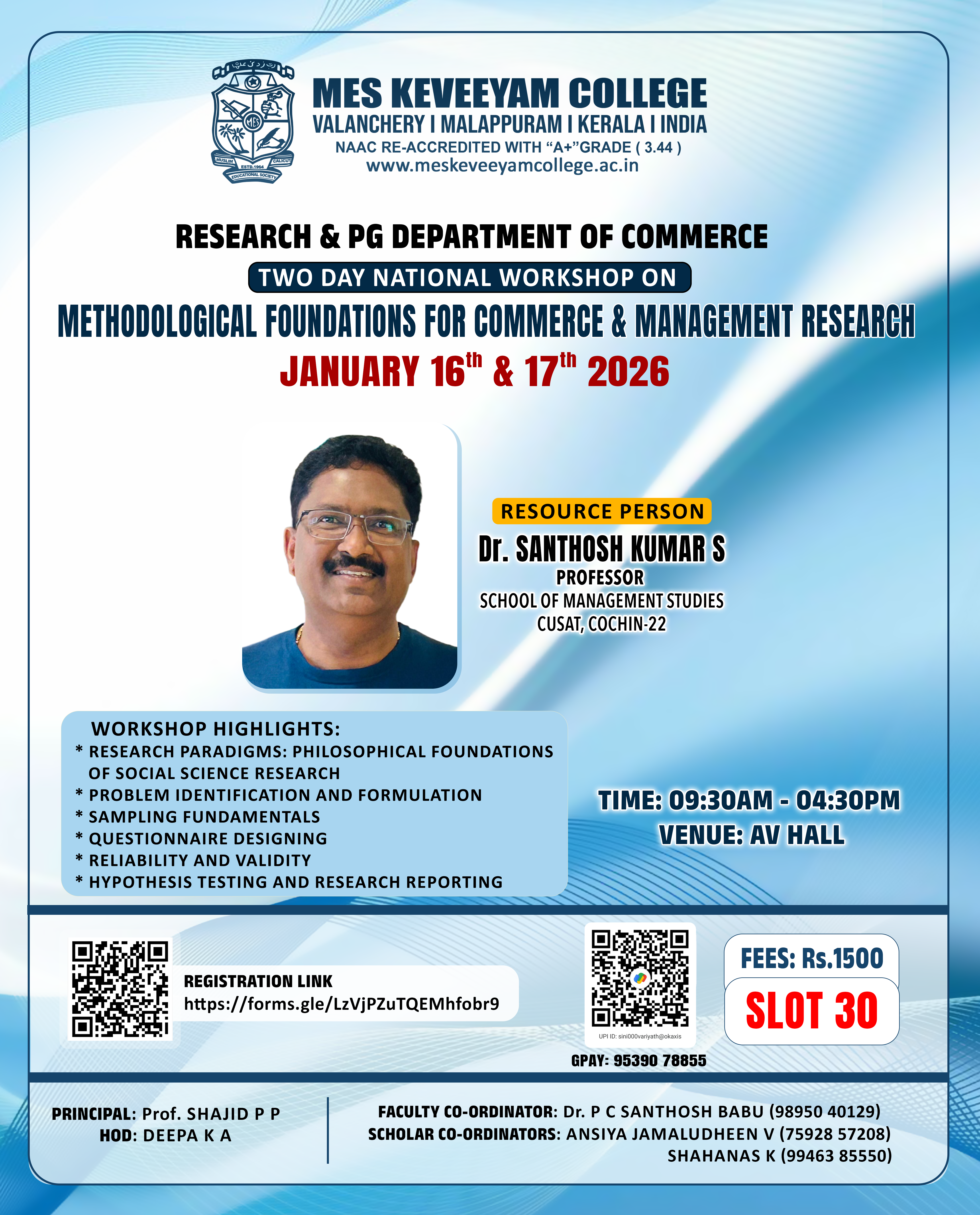 TWO DAY NATIONAL WORKSHOP ON METHODOLOGICAL FOUNDATIONS FOR COMMERCE & MANAGEMENT RESEARCH