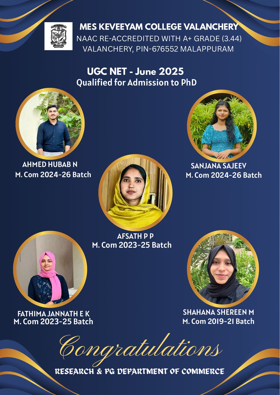 First Semester M Com Toppers