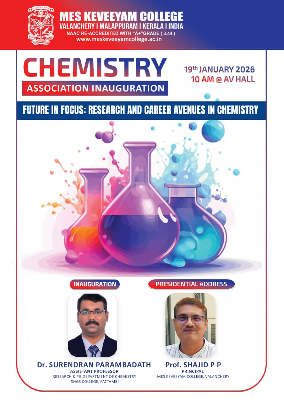MES Keveeyam College Valanchery has educated and shaped the future of students belonging to the rural precincts of Malappuram and nearby districts for nearly 42 years. The college has maintained a positive academic atmosphere for intellectual pursuits that has consistently been rewarded with excellence in curricular and co-curricular endeavours. The college is a Govt. aided institution run by Muslim Educational Society, affiliated to the University of Calicut and included under 2(f) and 12(b) of the UGC act. It has blossomed into a premier institution offering 11 undergraduate, 6 post graduate programmes apart from various other UGC add-on courses and trainings. The institution marked another significant milestone with the sanctioning of a Research Centre to Department of Chemistry in 2014. A well equipped research complex with state-of-the art facilities funded by DST-FIST has been inaugurated in 2017. Our College has been ranked at 51 by NIRF of MHRD, Govt. of India in 2016-17. The college is a partner institution of Study in India programme and Institution Innovation Council of MHRD. It was a felicitous recognition of the college striving for excellence when the college was conferred an ‘A+’ grade in the third cycle of NAAC accreditation with CGPA 3.44 in 2021. ...
